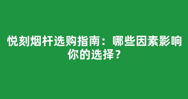 悅刻煙桿選購指南:哪些因素影響你的選擇?